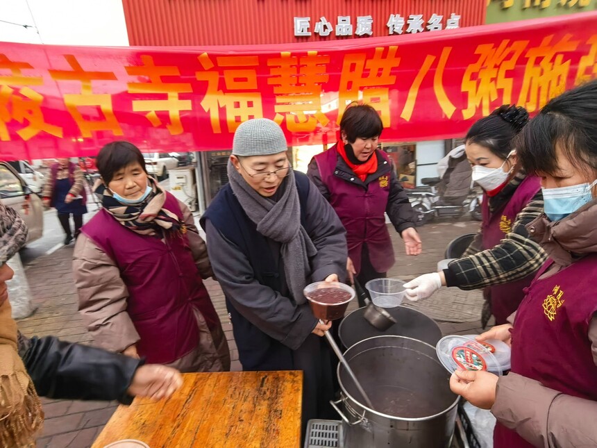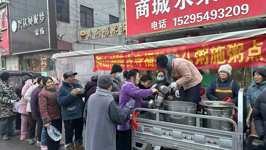 微山县湖陵寺为乡亲们送去的不只是一碗碗八宝粥,更是中国人民互帮互助的优良传统,是对需要帮助的特殊家庭、特别群体的人间大爱,更是我们一整年的风调雨顺、五谷丰登。
