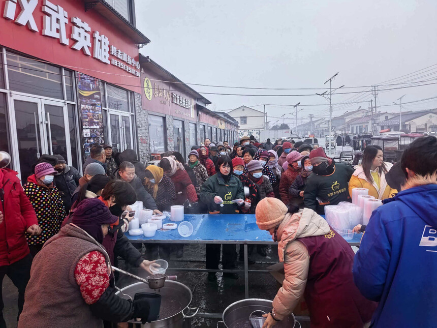 新中华报-中国红新闻 记者:李茹 腊八至,粥香浓、情意暖。1月26日是农历腊月初八,俗称“腊八”。在这一天,喝腊八粥是我国南北共有的民俗。五谷杂粮汇聚一锅温暖,干果蜜饯调和四季甘甜。 一大早,山东省济宁市微山县张楼镇湖陵村湖陵寺组织施粥送福活动。活动在湖陵古寺、南菜园农贸市场、龙固王勇粮店、商城水果店、江南糕点房等多处地点举行,乡亲们纷纷前来领粥,不一会,热气腾腾的腊八粥香漫街巷,勾勒出一幅幅爱心涌动、和暖融融的乡村美景。
