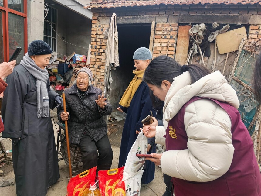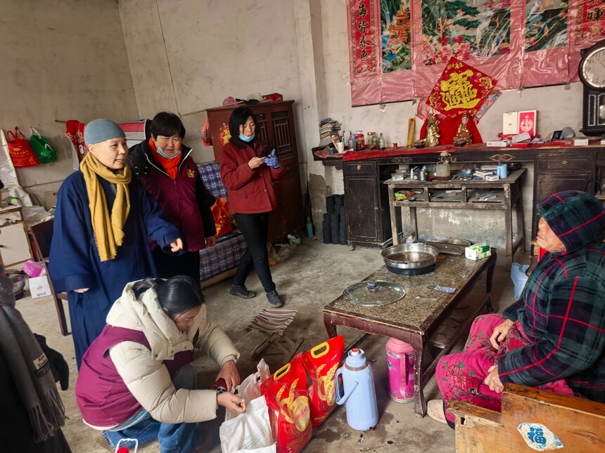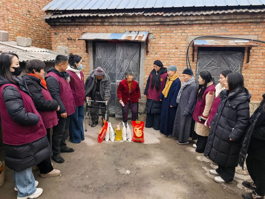 对于部分生活困难的特殊家庭,湖陵寺不仅为他们送去面粉、大米、食用油等生活必需品,为寒冬里的乡村小院送去满满的温暖和感动。