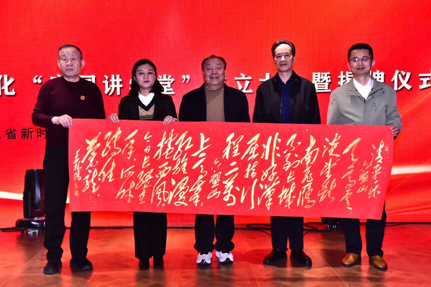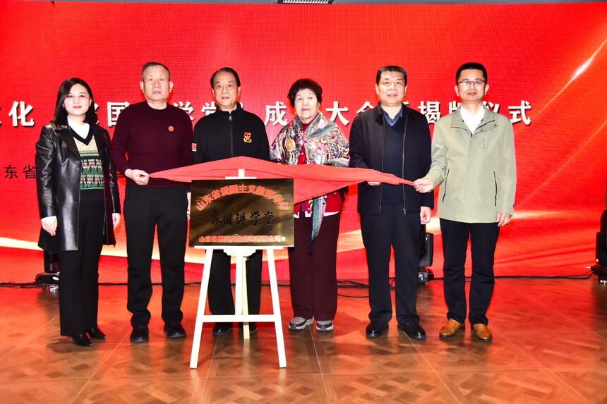 中共九大代表、原北京人民大会堂党委委员公茂香,毛泽东主席警卫员、山东省公安厅原警卫处处长王继红,原济南军区政治部宣传部部长、人民出版社旗下《雷锋》杂志社副总编辑张振江共同为菩莲文化“家国讲学堂”揭牌。